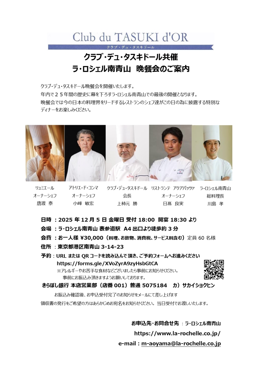 このたび、年内で25年間の歴史に幕を下ろす【ラ・ロシェル南青山】にて
